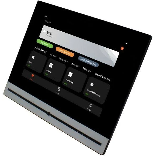 NİNOVA 10 Dokunmatik Ev Paneli, modern yaşam alanlarınızı akıllandırmak için tasarlanmış, kullanıcı dostu bir kontrol panelidir. Estetik görünümü ve yüksek teknoloji özellikleri ile evinizin her köşesine uyum sağlar. Hem işlevselliği hem de şıklığı ile öne çıkan bu panel, akıllı ev sisteminizi en üst düzeyde kontrol etmenizi sağlar.